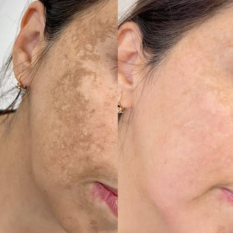 Reducción visible de manchas oscuras y melasma persistente.