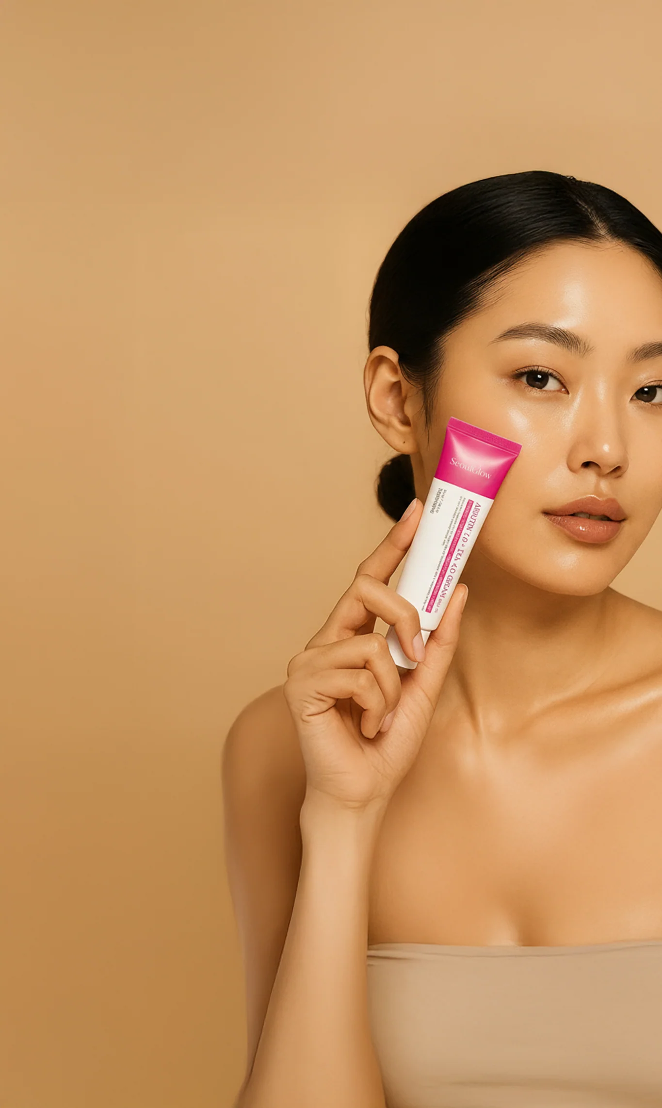 La Crema Revive SeoulGlow™ es una crema facial iluminadora y correctora de manchas formulada con 7% de Arbutina y 4% de Ácido Tranexámico.